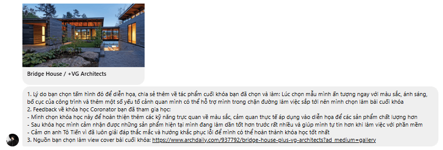 - Được tư vấn lộ trình học nâng cao rõ ràng, từng bước trở thành Archviz Artist chuyên nghiệp.